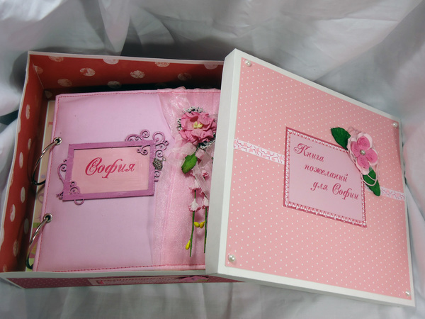 на последнем форзаце 2 карточки для фото и пожеланий на другой стороне...