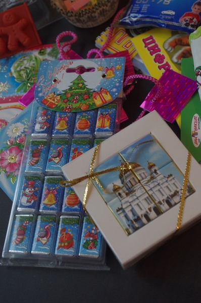 Шоколадки. Новогодние папа сразу утащил к себе и слопал))) Сказал СПАСИБО!!!! Вкусно, но мало))))
