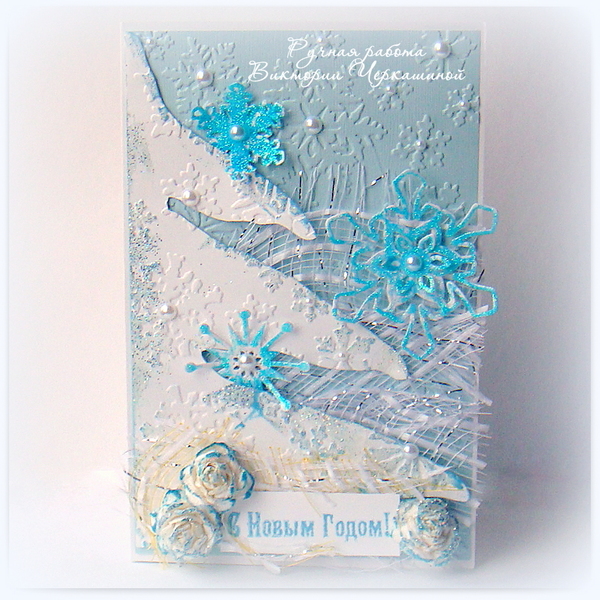 очень крутые розы,Вик!И тиснение отличное.И открытка в целом хороша! я сегодня шпарила тоже:)новогодние работы:)))))) завидую тем кто сам умеет фотографировать.Для меня каждый раз стресс что Маша не успеет приехать и придеться отдать работу:))))