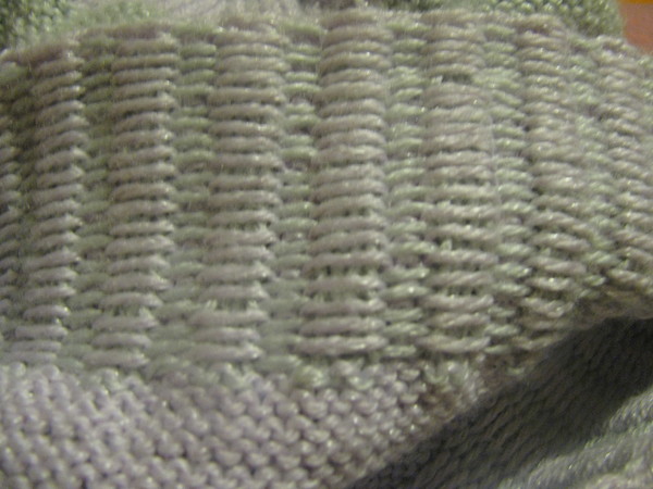 На том месте где ты белым вязала, зеленая нить просто сзади протянута в свободном полете.
