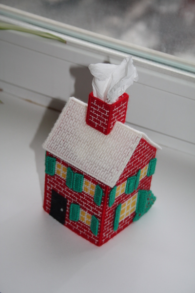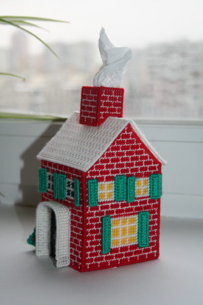 Домик чудесный! Я никогда не пробовала вышивать на пластиковой конве. Скажите, а как вы скрепляли детали? ниткой прошивали? и узор на домике необычный...
