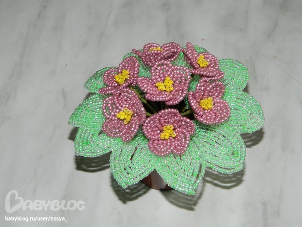 Бисер. Бисероплетение. Украшения из бисера.Начинаю готовить подарки на НГ. Такие фиалочки хочу сделать в подарок своим девочкам на работе, у меня в смене их трое.