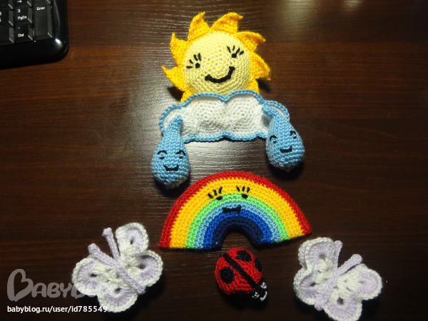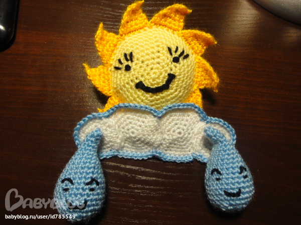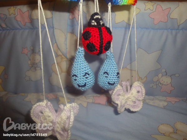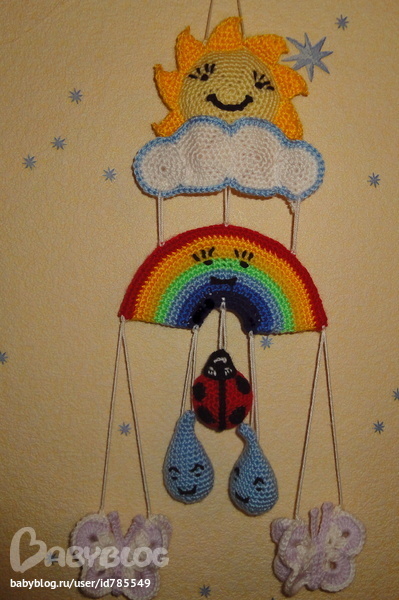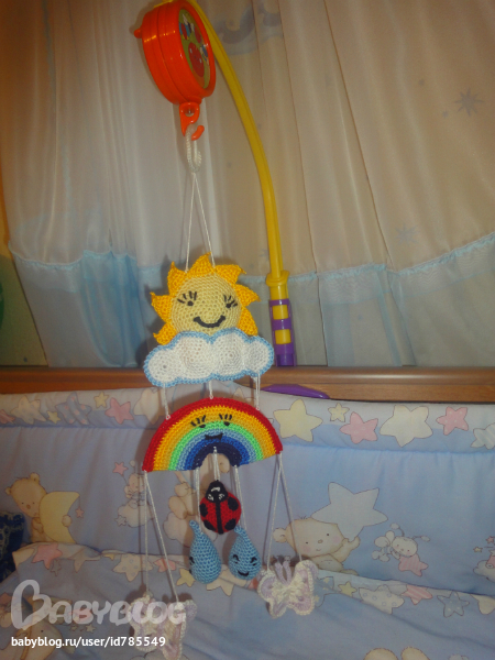 связала крючком мобиль(увидела в инете)-правда внесла свои изменения)))