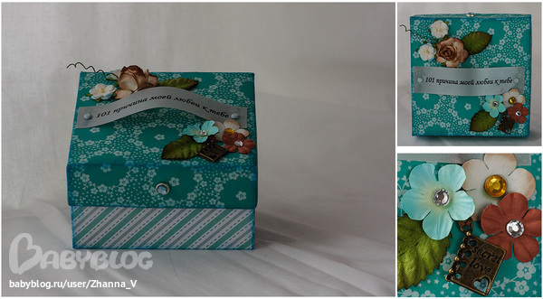 СкрапбукингС почином меня) Заказала, у меня девочка коробочку с причинами, в бирюзовых тонах. Волновалась жутко, скинула фотку заказчице, она осталась довольна) А я еще довольнее)