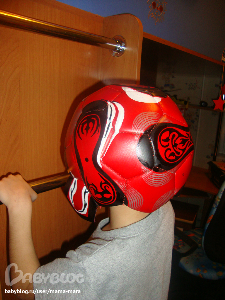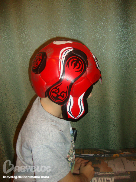 Вот такой шлем получился из старого футбольного мячика. Немножко фантазии, ножницы, краски и маркер. Сын очень довольный, называет себя рэнжером. Ниже много фото.