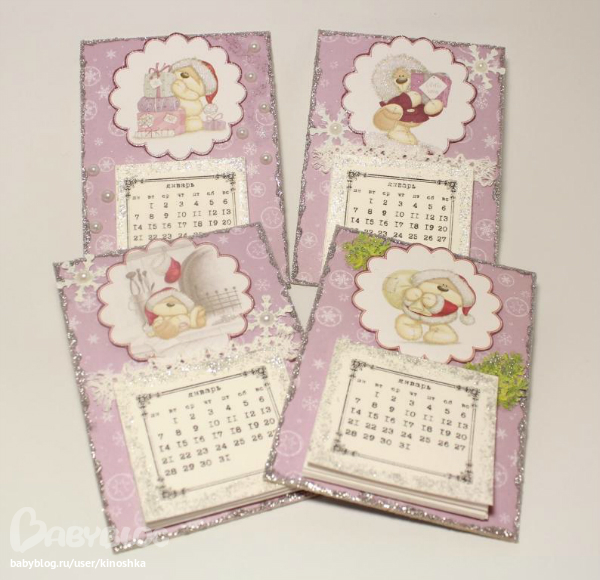 Магнитики-календарики на холодильник. И все сиреневого цвета - по просьбе заказчицы. (может быть любимый цвет???)