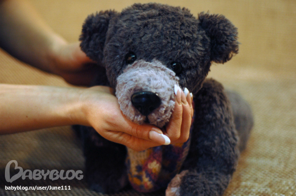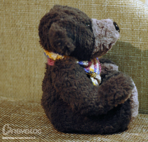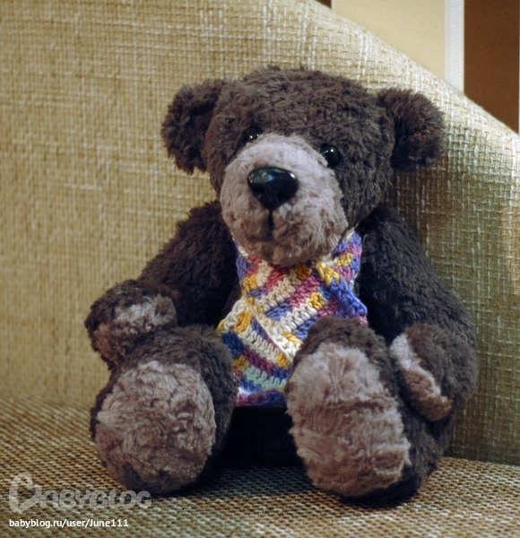 Медвежонок Топтыгин немножко замерз,поэтому невероятно обрадовался теплому шарфику.Обоятельный и немножко скромный мишутка хочет в заботливые мамини ручки.