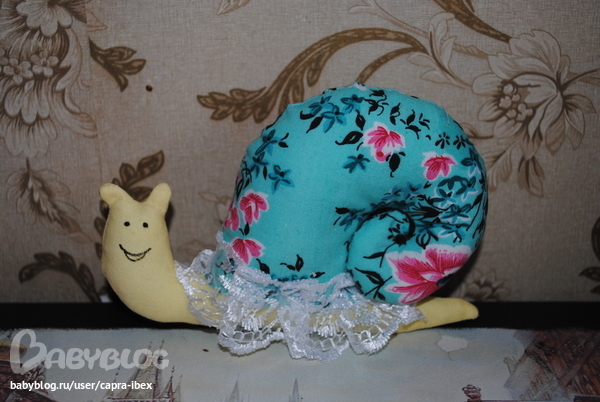 У меня родились две улиточки! Так понравилось их шить! Улитки отправятся в подарок двум маленьким девчушкам, надеюсь они им понравятся ))) Потому, что играть ими будут дети, решила я им нарисовать улыбку, а то одних глазок как-то мало... Ну, а вот и сами улитки!