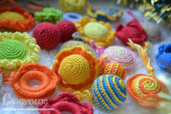 а я регулярно опрокидывала елку вместе с игрушками и гирляндой на себя, это была уже своего рода традиция))))) Поэтому в прошлом году придумала для Ритки такой вот вариант. Елка у нас искуственная, сейчас она уже ниже Риткиного роста, так что можно ее ронять, игрушки кидать и всяко отрываться)))