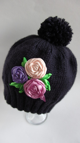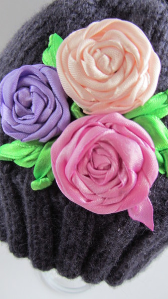 Спасибо))).В принципе не сложно,но я такая привереда.,самое главное понять принцип укладки ленты.Эти сделала со второй попытки-первые были пышные,но на этой шапочке не очень смотрелись,хотя они мне больше понравились.Вот попробовала,а теперь уже столько идей куда можно вышивку пристроить.,ручки аж чешутся
