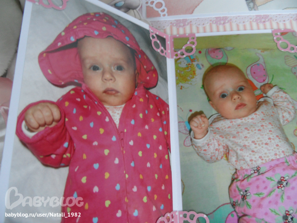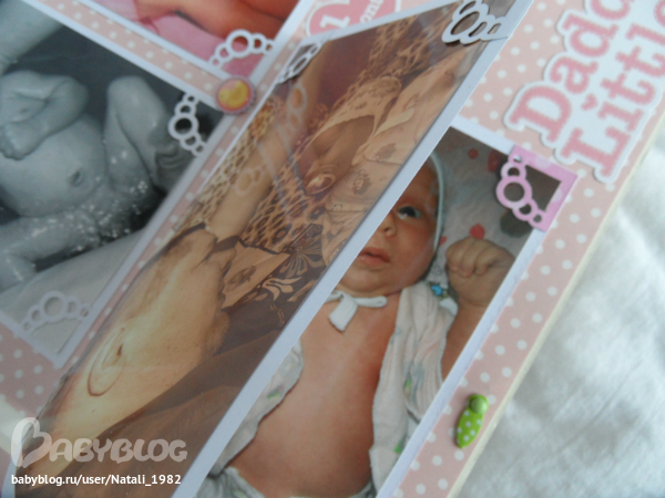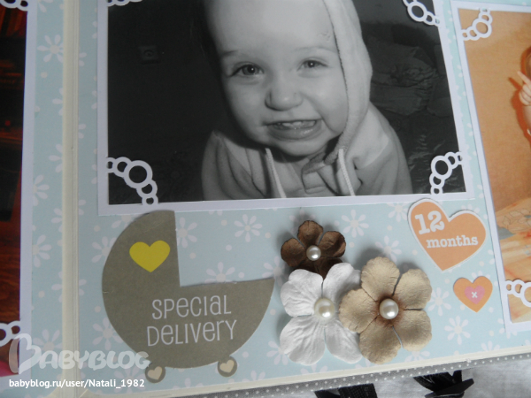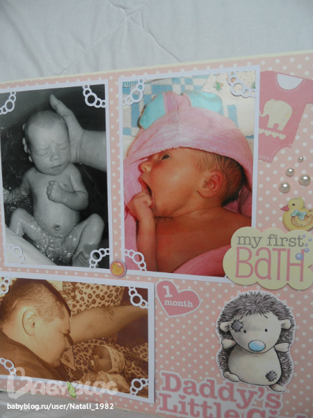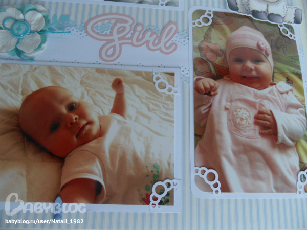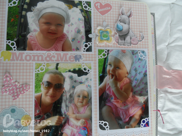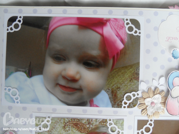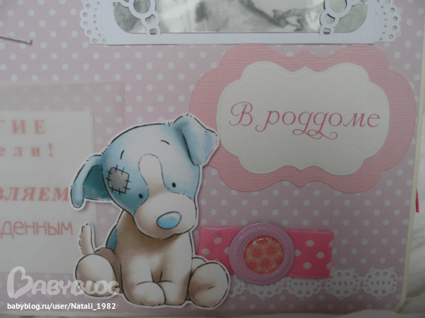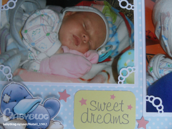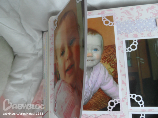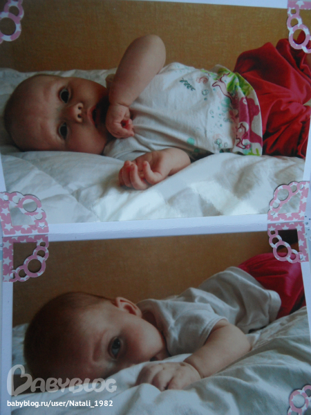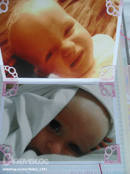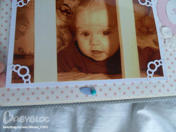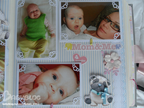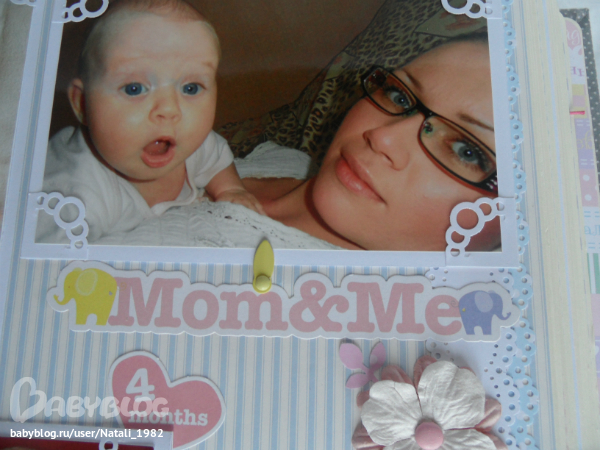 Дальше поехали, страничка из роддома. Единственная фотка, где Маруся еще в роддоме, да и та с телефона, отсюда качество (эт я, голова садовая, не взяла фотик с собой!). Фотошопила я ее, фотошопила, да не фотошопится она, пришлось довольствоваться тем, что есть.