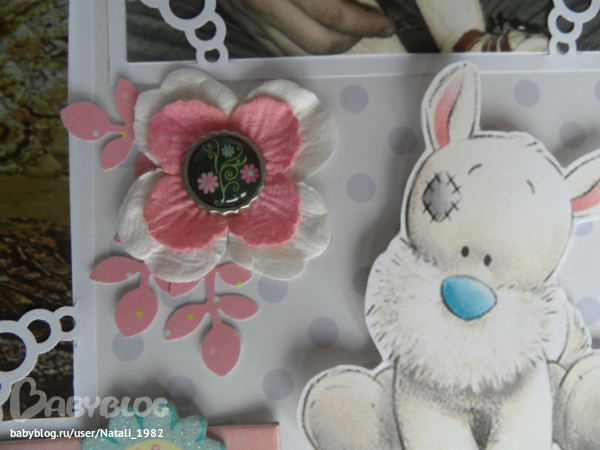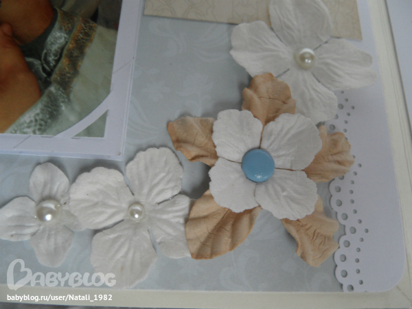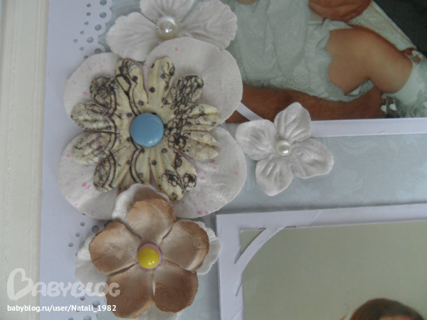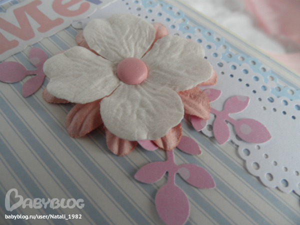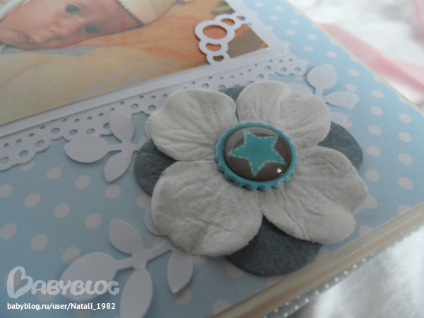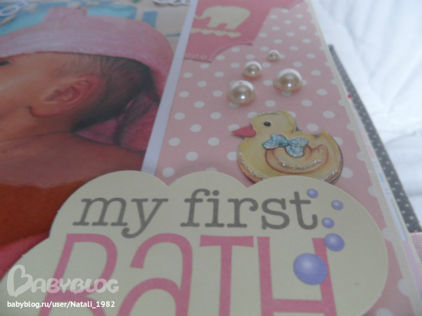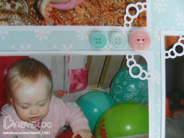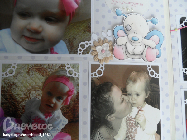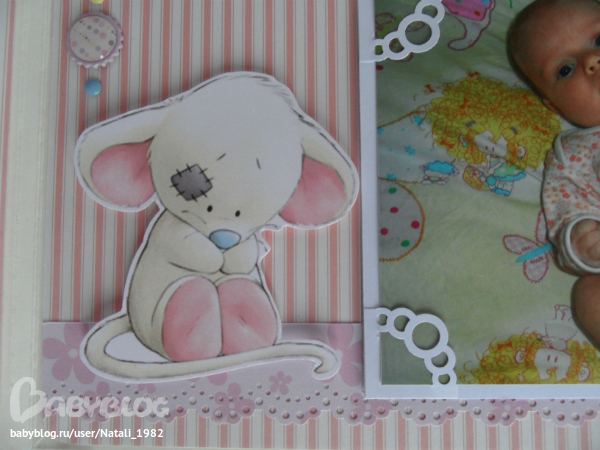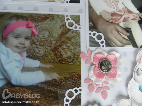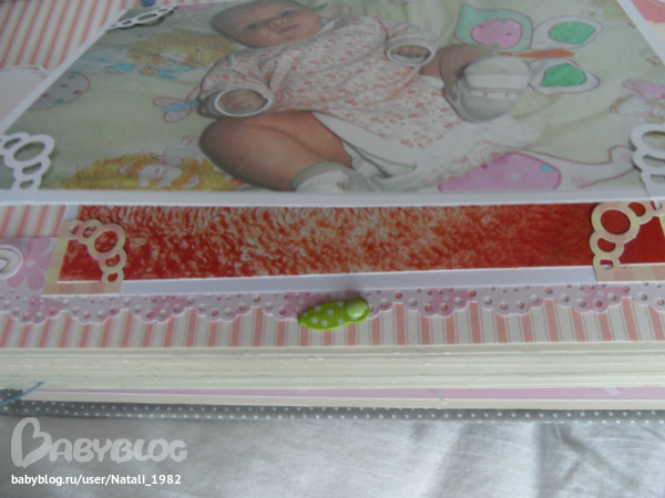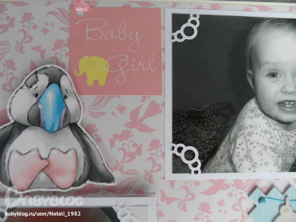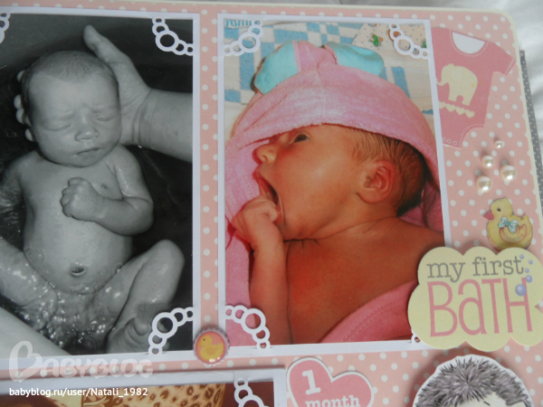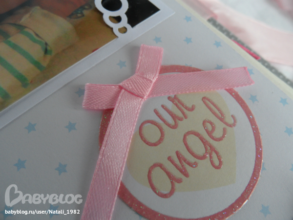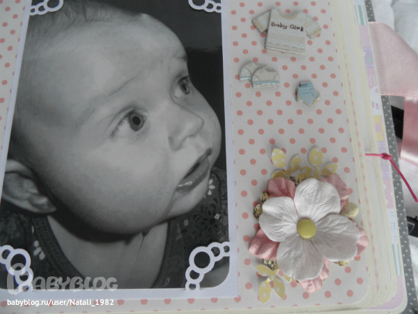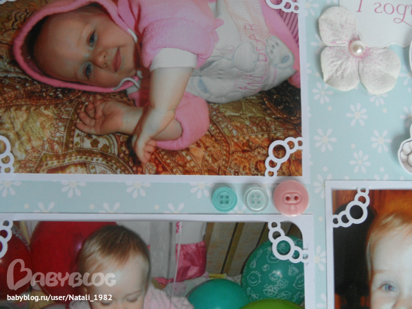 Дальше поехали, страничка из роддома. Единственная фотка, где Маруся еще в роддоме, да и та с телефона, отсюда качество (эт я, голова садовая, не взяла фотик с собой!). Фотошопила я ее, фотошопила, да не фотошопится она, пришлось довольствоваться тем, что есть.