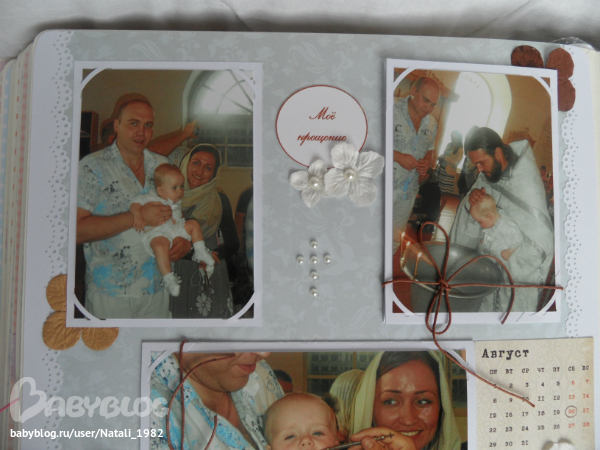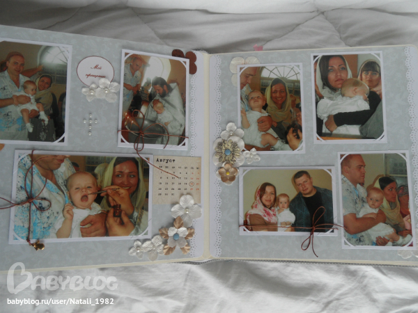 Разворотик про крещение. Больше всего я его боялась делать, а получилось вроде и ничего. Правда, анкеров мне не хватило, пришлось кое-где фотки прятать под шнурочки (((