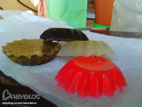 еше основы осталось- я разлила ее в формочки для кекса смешала с разными ингридиенами- это было так для интереса. ивот что получилось. все мыло пошло на подарки,сееб чтото оставила. вообщем сейчас перед нг уже закуилась побольше(сякие формы итд) чтобы обрадовать подарками родных.А готовится все просто- за пол часа управилась