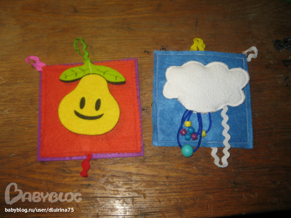 А я этот пост и не увидела. :-) спасибо огромное за чудесную развивашку. :-) первым делом ее полчаса мучили муж и мама. :-) :-) :-) потом отдали Тиме. Тима очень любит книжки, он ее пожевал немного и стал изучать. Пока разобрал на составляюшие, играет теперь по отдельности с каждым кусочком. Завтра соберу опять на тесемку.
