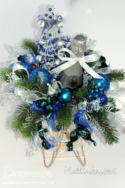Девочки со стороны виднее, делала букет ...без цветов, конфеты ...шампанское ..елка