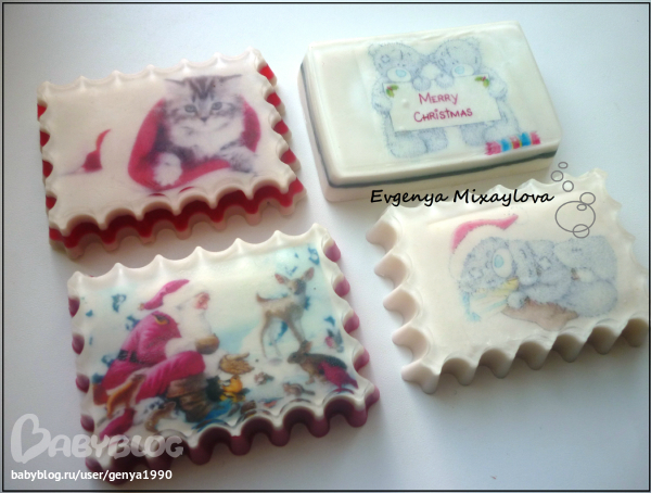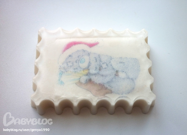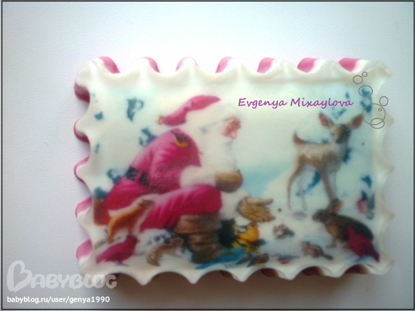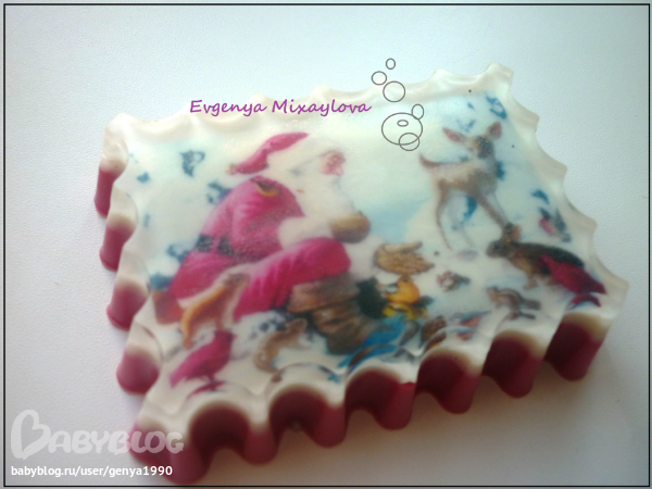С рисунками - дед мороз со зверями (масло персиковое,миндальное,аромат бабл гам)