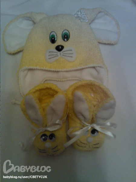 схем нет,обычная лицевая гладь.к пинеткам ушки вяжу и пришиваю,глаза приклеиваю готовые купила,носик флис или кружок маленький вяжу и стягиваю, усики ,ротик-вышила.Шапочка связана лицевой гладью(пряжа чем то на травку похожа,поэтому такие плюшивые получились)ушки отделно вязала+ флис,мордочку из флиса пришила,глаза,нос покупные.Надеюсь понятно объяснила.Пинетки самые обычные вязала лиц.гладью.Спрашивайте если что напишу как вязала поэтапно