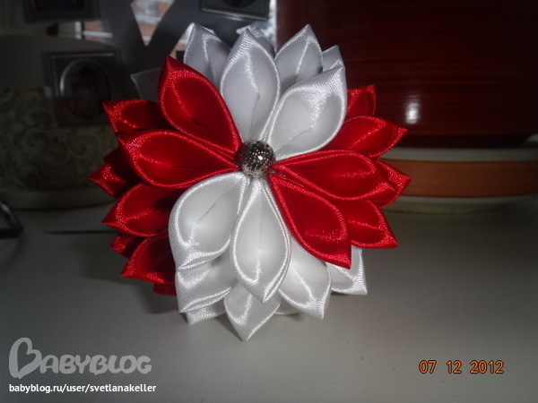 http://masterclassy.ru/podelki/podelki-k-prazdnikam/667-elka-svoimi-rukami-v-tehnike-cumami-kanzashi.-master-klass.html мастер-класс по которому я делала, только я делала одними острыми лепесточками, с круглыми мне как-то не очень понравилсь)