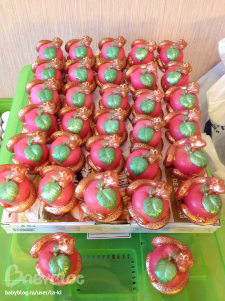 Это небольшой сенпертарий))))) Заказ был на 36 штук (несколько уже упаковала). И все именно такой рассцветки - коричнево-золотистая змея, красное яблоко. Окрашена основа, заливала все частями. Сверху только немного мики для придания блеска. Ух, и повозилась я с ними((((((( Надолго мне эту форму расхотелось в руки брать.