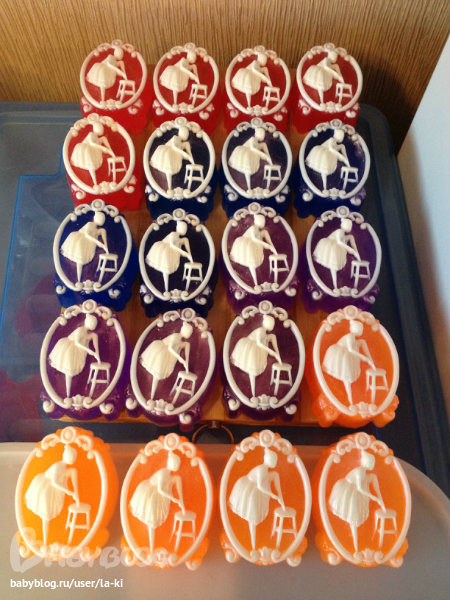 Часть заказа на балеринки. Я тут как то посетовала, что формочки с балеринками как то без дела лежат. Ага. лучше б не вспоминала. Поступил заказ на них. Начинали с 15 штук. в итоге все закончилось 45 (!!!!) штуками. Поэтому часть в одной форме. Ну, а основная часть в другой.