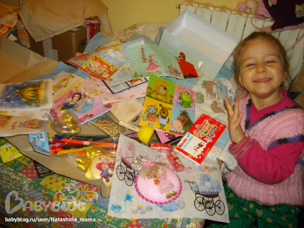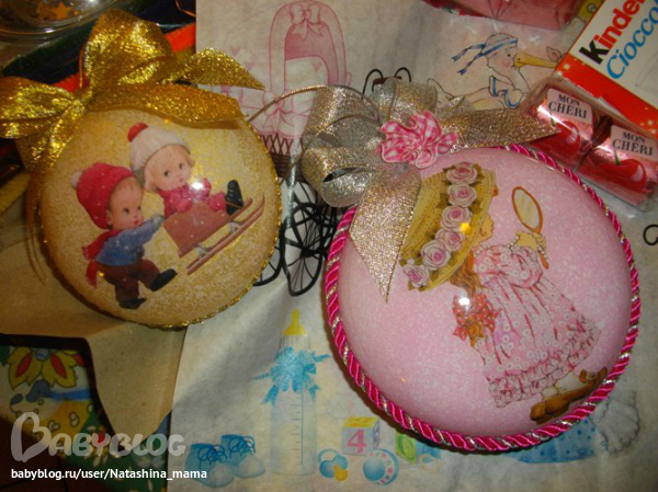 Ирочка подарила мне потрясающие шары на елочку ручной работы, а еще кучу слафеток для декупажа, просто мега красивых!!!!! Заготовки для елочных игрушек, сундучок (задекупажить), сладости.... Это просто супер мега подарок! Было безумно приятно, к тому же это первый человечек, который прислал мне подарочек просто так, безвоздмездно, ни по какому ОП и ничего не попросила взамен! Мне казалось, это только в сказках бывает)))) Ирочка, спасибо тебе огромное! По Наташкиной довольной моське можно понять, как нам всем понравился твой подарок! И я все же настаиваю на ответном подарочке)))) Адрес у меня твой есть))) Хочу, чтобы Ванечка тоже порадовался, как Наташа! Ближе к весне организую летнюю послылочку! Спасибо тебе огромное, ты просто потрясающе классный человечек!