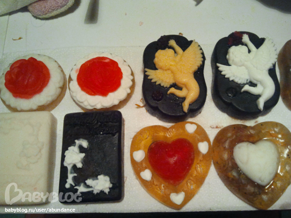 У Вас хорошее начало! Но! Делайте более выйграшные фото своих работ - при хоршем освещении, на красивом фоне... Мыльце мало сварить, надо уметь его преподнести! А у Вас все выглядит как-то неопрятно и грязно и это именно из-за того, что фотки не удачные! Только без обид...