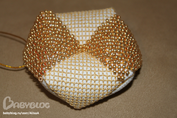 Первый раз вышивала бисером, результатом не довольна... Бисер купила чешский Preciosa, он оказался не совсем ровный, может быть одной мне так "везёт", сколько слышала все чешский бисер хвалят... Начала бисер пришивать мононитью, специально для этого дела купила её. Работа с мононитью это что-то... нить не видно, она то и дело ускользала от меня, а так как шила я в основном по ночам, гороче чуть глаза себе не сломала... В итого плюнула и бисер пришивала на мулине.
