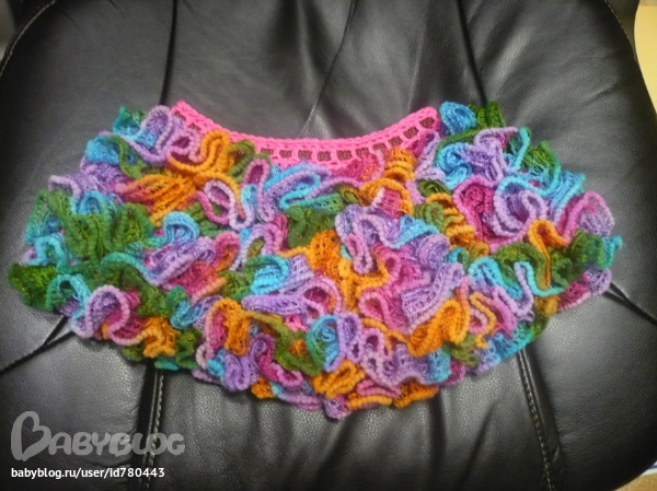 Здорово выглядит! Я себе такой шарф вязала на осень, и даже предположить не могла, что и юбочку можно связать! Если не сложно, напишите описание, я бы доче на лето с удовольствием такую красоту связала!