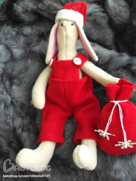 С фейсом проблемы у моего заюши-носик слишком высоко.( муженек сказал, что похож на голубя))))))))), но потом похвалил все-таки)))))) Сидит он косо (т.к. фоткала на балконе по-быстрому...холодно брррр)