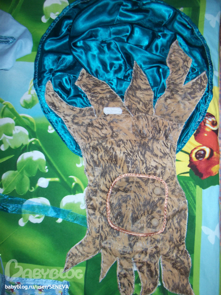 Дерево (Я им горжусь! Очень мне понравилось, как оно у меня вышло!) Крона из старой атласной юбки ярко-зелёного цвета (цвет немного другой, т.к. фотола ночью), ствол из старой ветровки племянницы (вот она вторая жизнь вещей!)