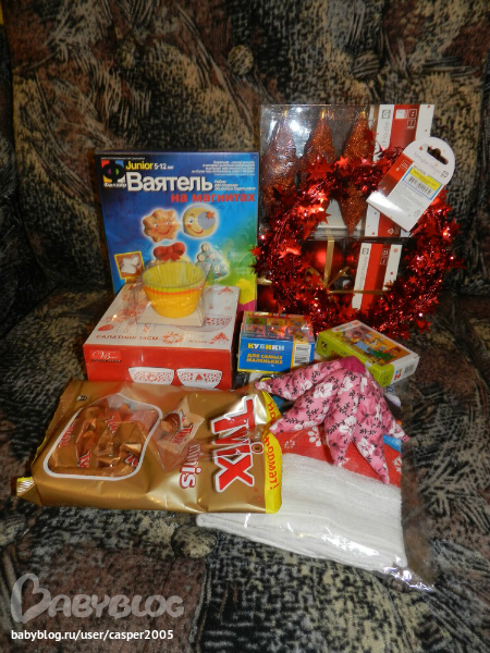 Мне формочки, салатник новогодний и полотенички на кухню)))) Причем Катюха угадала с формами на 1000% и теперь у меня их будет 10 штук)))) В таких формах кексы классные получаются)))