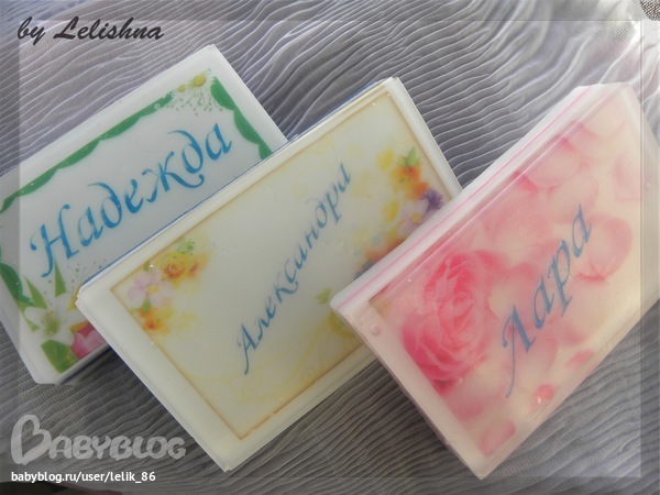 я и говорю об этом. делаете штамп имени из пластики и пропечатываете его на мыльце, шикарно получается!