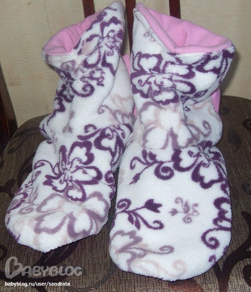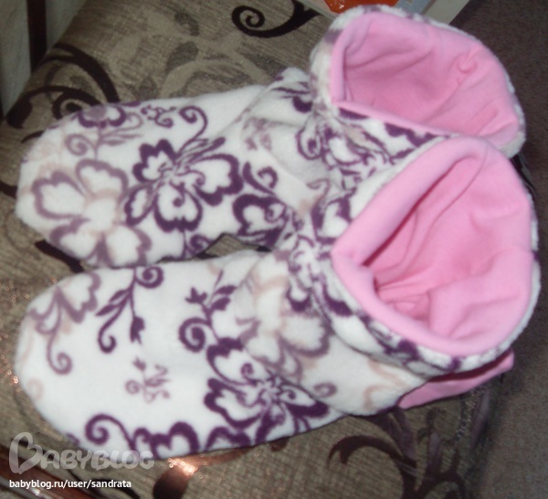 Сшила домашние тапочки в подарок из велософта, трикотажа и стелька плащевка утепленная синтепоном.