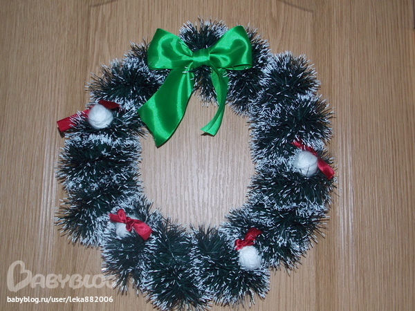 Я все украшения просто пришила нитками. Все, венок готов, наслаждаемся красотой и поднимаем предновогоднее настроение)))