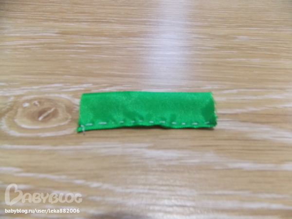 Потом шьем кольцо для середины банта, складываем кусочек ленты вдоль и сшиваем, потом эту "трубочку" делаем плоской и сшиваем в кольцо (надеюсь, понятно описала):
