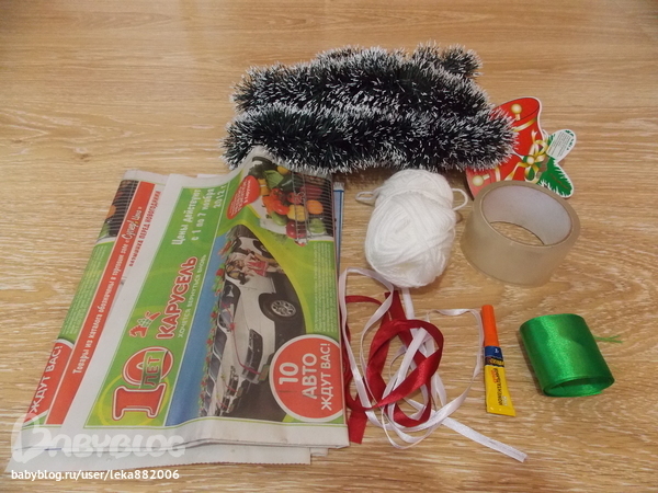 Сам венок готов. Можете украсить его по своему усмотрению, я украсила так: делала украшения из того, что было дома))) Сначала из газеты скатала шарики: