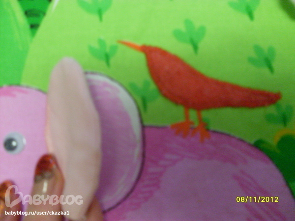 Ушко у слона отгибается и шуршит, а птичка из шершавой стороны от посудной губки