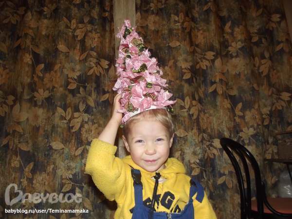 Вот пришел сынуля из садика и первым делом к Ёлке... "О-о, мама, я буду Колпачком!" я не поняла про колпачок, переспросила, оказывается он решил, что это головной убор на елку в садик. Колпачок!