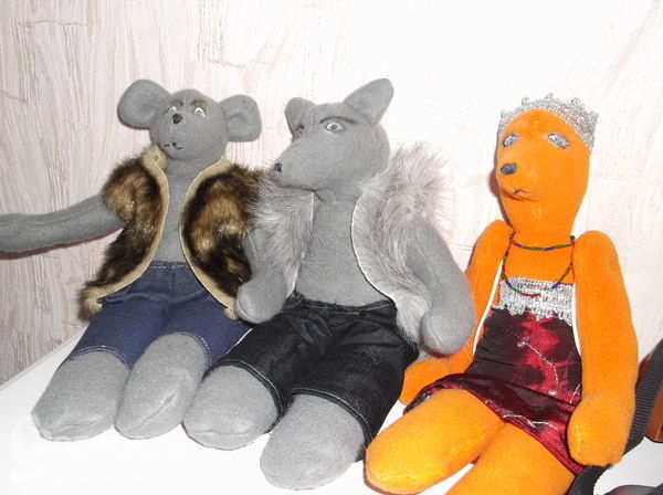 Да ладно вполне себе зверушки узнаваемые)мышка,волк и лисичка ( спиной не понятно))). А из какой сказки?