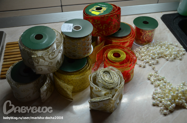 На мамину ёлочку делаю бантики в красно-белом стиле.