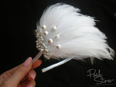у меня в голове несколько идей это либо красивый белый бант на ободке с перьями, может органзой и фатином.