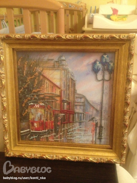 Вот забрала из багетки..Это моя первая работа бисером, так что не судите строго)))