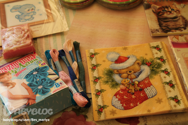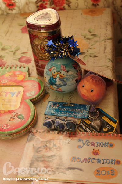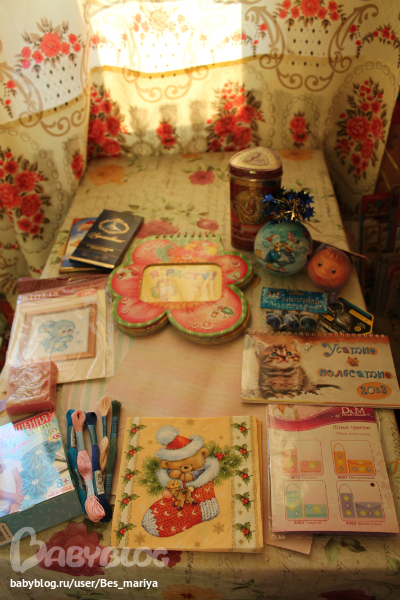 Машенька, огромное тебе спасибо за теплые слова в мой адрес! Я очень рада, что мне удалось немножечко поднять настроение в это какое то суетливо-проблемное предновогоднее время. Не буду лукавить, скажу, что мне действительно хотелось бы подарить чуточку внимания всем членам твоей семьи. На самом деле это очень приятно, когда твои старания приходятся по душе. И в словах твоей благодарности чувствуется большая отдача. Ведь, конечно,подарки приятно получать, и дарить тоже!!! Для девушек, читающихэтот пост скажу, что от Машеньки я тоже получила замечательнейший подарочек/подарочки, который понравился всем членам семьи. Я очень рада, что еще есть люди, способные делать добро незнакомым людям. Маша не только чуткий и добрый человек, но и еще чудесная мастеица!!!Маша, надеюсь на дальнейшее взаимовыгодное обменно-посылочное сотрудничество!!!