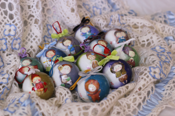 эксклюзивный) Таких новогодних шаров нет ни у кого! Набор из 12 шаров, сделанных по мотивам работ талантливой художницы из Харькова Евгении Гапчинской. Шарики подвешаны на кожаный шнур и декорированы бархатной лентой.