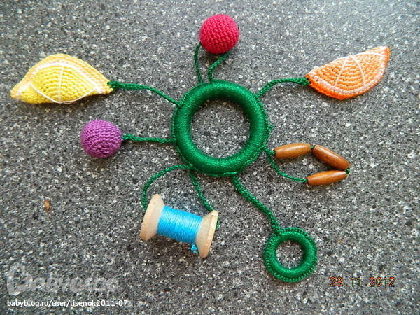 Спасибо))) я ее с удовольствием вяжу - и бусины можно использовать и киндер в голове гремит и колечко погрызть можно - в общем, многофункциональная))))