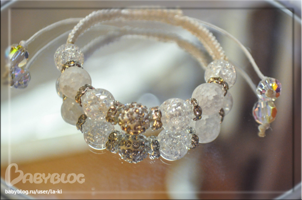 Да, тут и не только Сваровски поблескивают)))))) Вот в белом браслете мне очень понравился хрусталь кракле. Тот что рядом со Сваровски. Что-то типа маленького ледяного шарика. Я в него просто влюбилась)))))