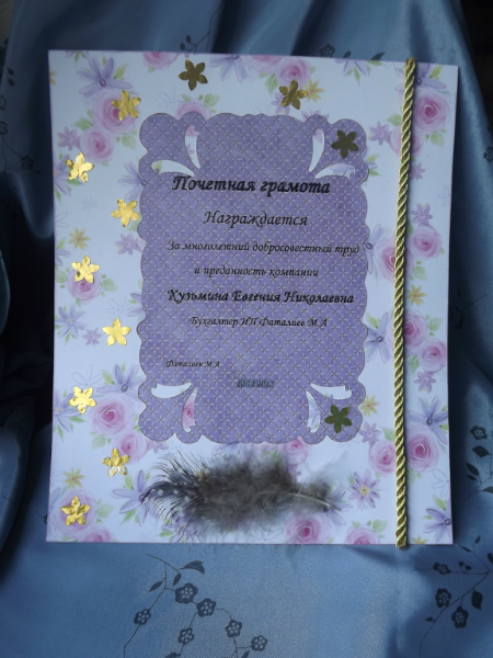 Сегодня вечером корпоратив, я ведущая, решила выделить одну сотрудницу, она работает уже 12 лет, когда остальные года по 4 максимум :) вот что своялось:)