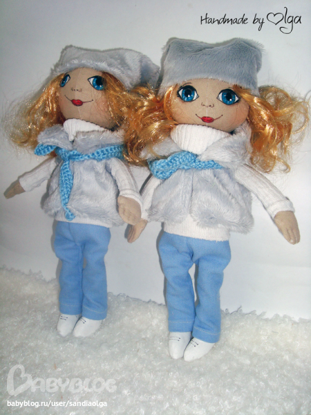 Какие близняшки хорошенькие!!! У них улыбка разная, а так очень похожи. А я привыкла больше на ваших тильдочек смотреть, куколки обалденные!!!
