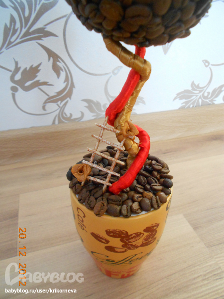 делаю вот такой топиарий на подарок , цвета подобраны в тон кухни, ну вобщем идейка была сразу такой что два цвета переплетаются и в итоге вырастают на шаре цветы....